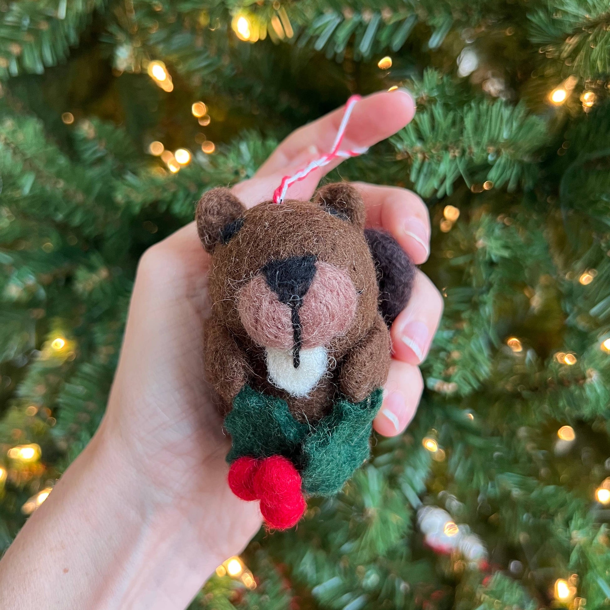Our collection of Animal Friends Ornaments makes a cute addition to any Christmas Tree! This set of six tufted ornaments includes one Beaver, Brown Bear, Fox, Owl, Polar Bear and Reindeer. Our quality ornaments are handmade using natural sheep wool. Popular for their charming designs, felted ornaments are soft, durable and excellent for holiday gifting. Perfect stocking stuffers or unique Christmas decor! Dimensions: approximately 3.5" tall Materials: sheep wool