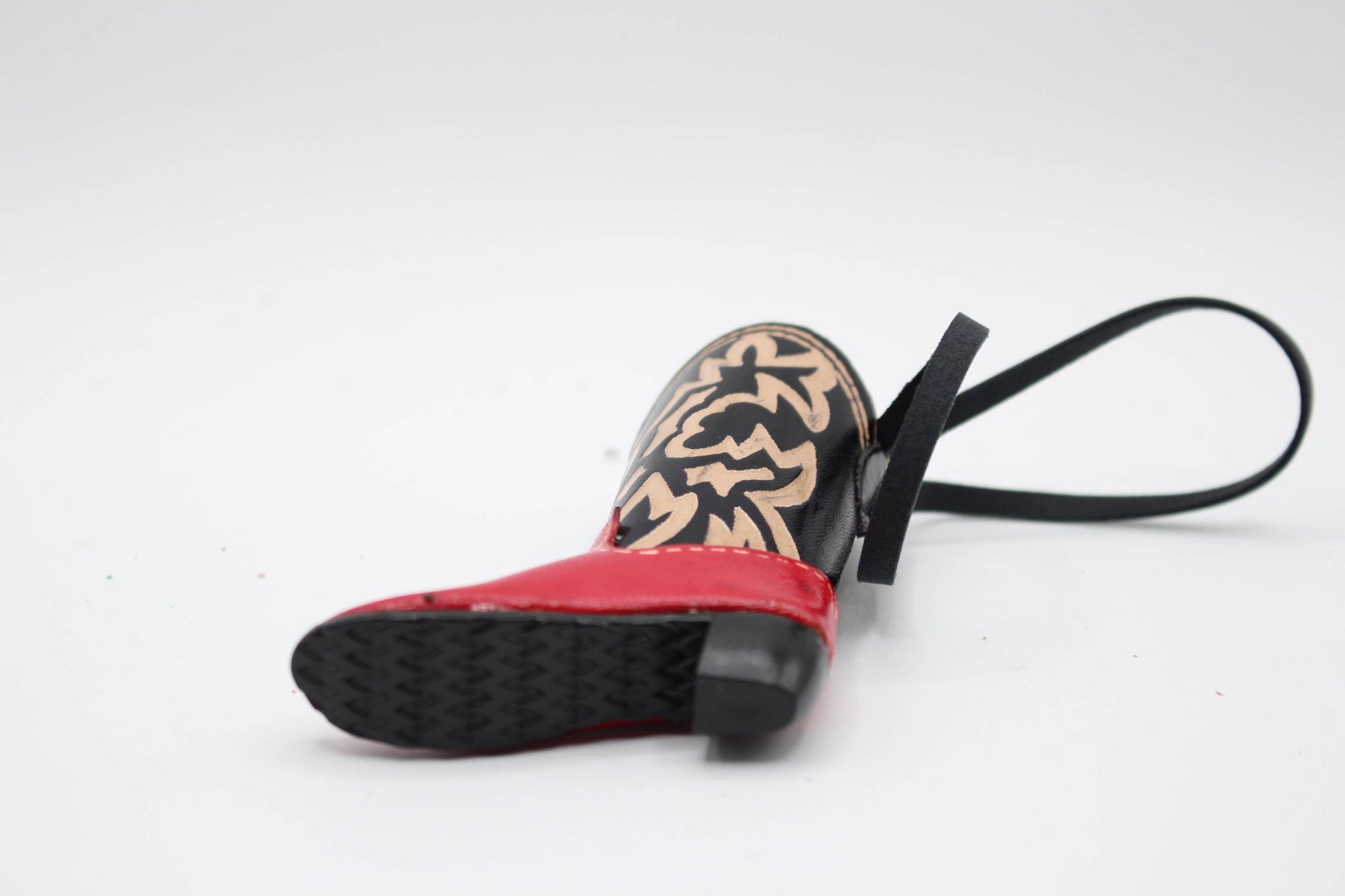 Decorate your tree in a fun western motif with this genuine leather cowboy boot ornament. Quality sturdy leather with amazing detailing. 3.5" x 2.5" x 1.25".