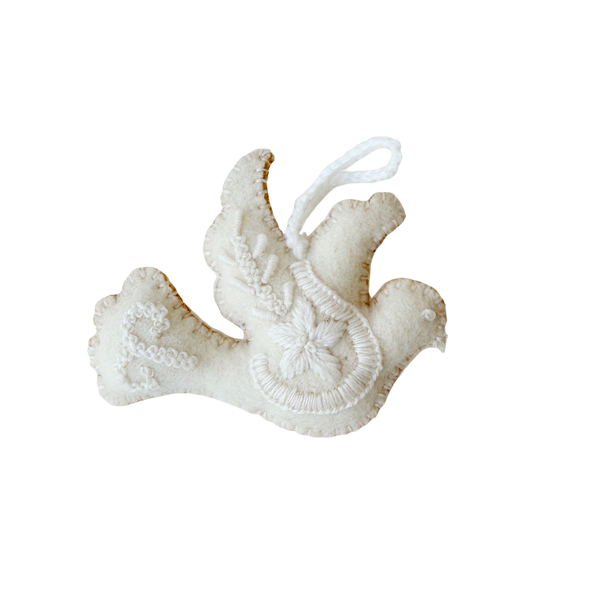 White Dove Embroidered Wool Christmas Ornament